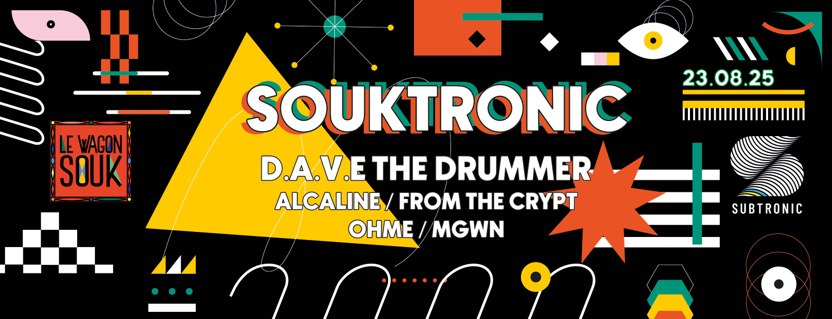 00h-4h, le souktronic indoor avec MGWN et Dave the drummer pour montrer en intensité et te faire rentrer dans un bazar jouissif. Montes sur le tapis volant bébé ça va voler